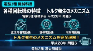 電験3種 機械科目 平成30年度 問8 解説 | 各種回転機と変圧器の特徴比較