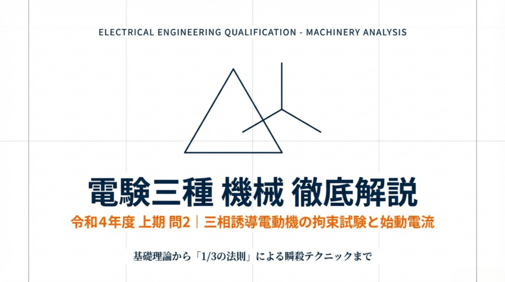 今回は、令和4年度上期 問2 を題材に、拘束試験の結果から始動電流を求める手順を、スライドに沿って解説します。実は**「1/3の法則」**という裏技を使えば、驚くほど簡単に解けてしまう問題でもあります。