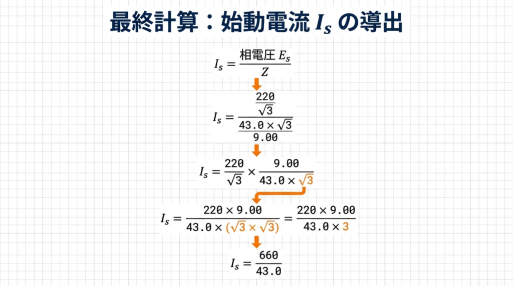 スライド7:最終計算:始動電流 $I_s$ の導出