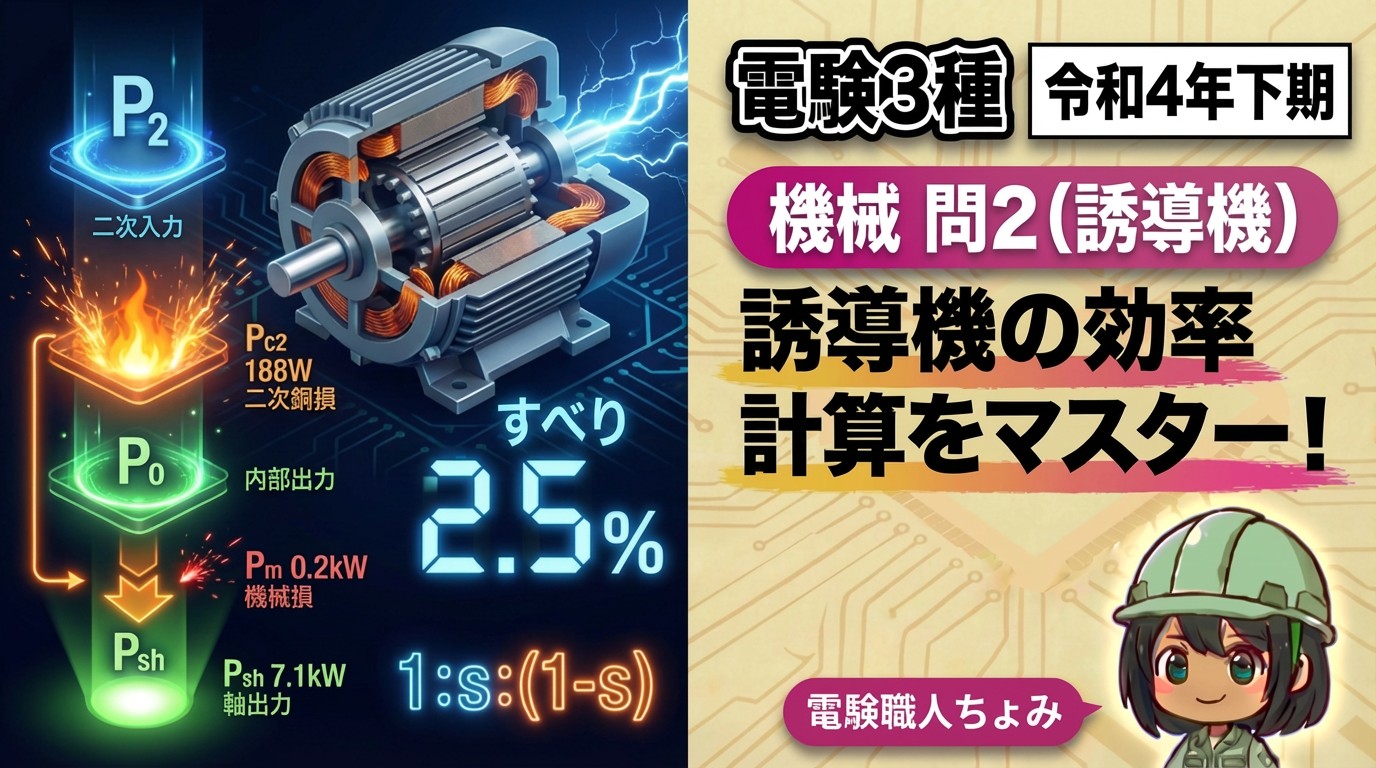 #11【電験3種】令和4年下期|機械 問2|誘導機の効率計算をマスター!