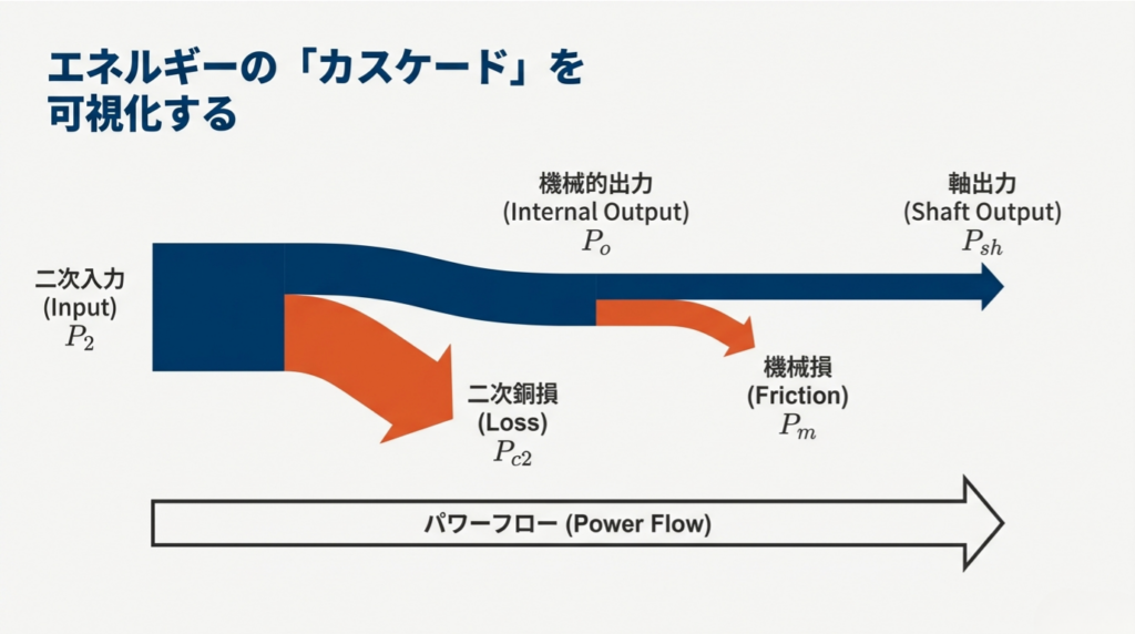 2. 二次銅損 $P_{c2}$: 滑りによって「熱」として捨てられる損失。
