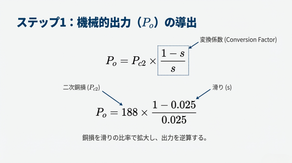 スライド6:ステップ1:機械的出力 $P_o$ の導出