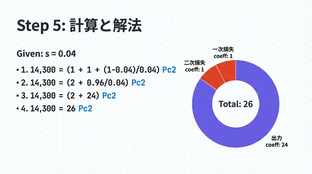 - 変数統一: 未知数が多いときは、滑り $s$ を利用して最も求めたい変数(今回は $P_{c2}$)に統一するのが鉄則です 。