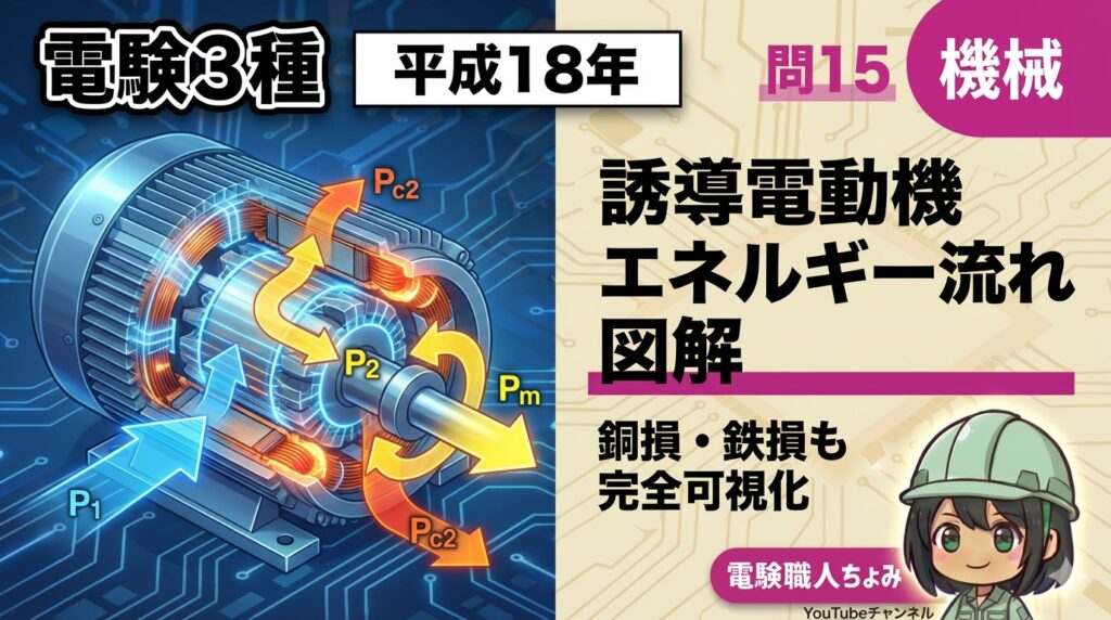 電験3種・機械科目で頻出の「誘導電動機」。その計算問題を解くための最強の武器、「パワーフロー(エネルギーの流れ)」をご存知ですか? 今回は、平成18年度 問16を題材に、このパワーフローを使った解法を徹底解説します。公式を丸暗記するのではなく、... -