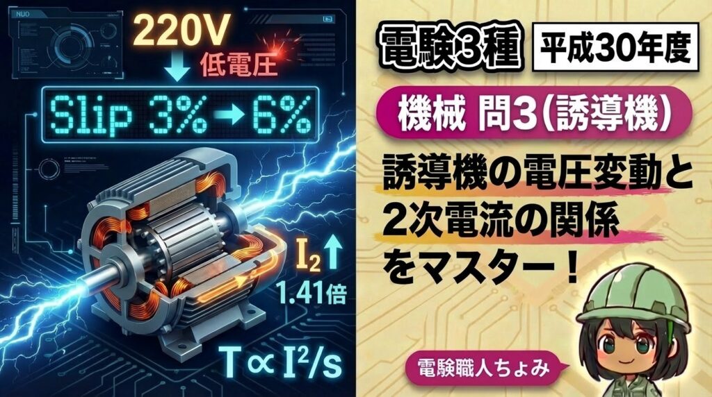 #10【電験3種】平成30年|機械 問3|誘導機の電圧変動と2次電流を徹底解説!定トルク負荷の黄金法則